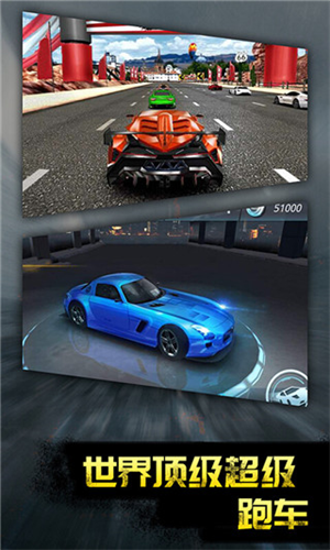 1、逼真的3D画面,激情的音乐与速度完美融合,感受极致的速度体验;