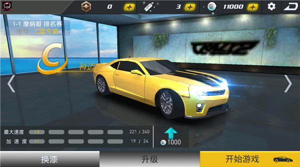 6、完成比赛获得的奖励可以给赛车升级,也可以解锁新的赛车