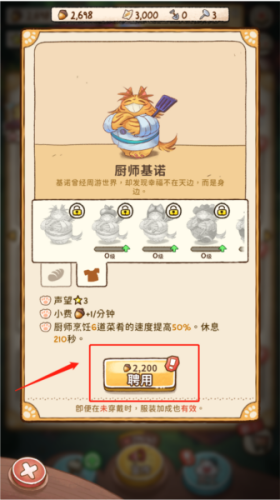 2、找到想要聘请的员工,如“厨师基诺”点击