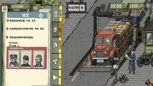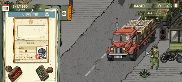 4、进入游戏如图,玩家需司机给出的证件来判断是否真实,并给予是否放行。