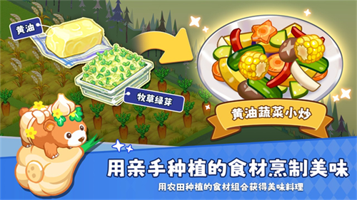 种植并收获各种农作物来发展农场。出售农作物并购买动物饲养证即可邀请更多动物