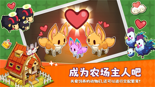 6、消耗爱心让动物进行交配,有几率获得拥有新花色的高级动物,高级动物收益更高。