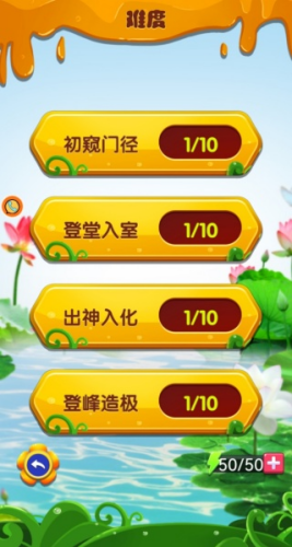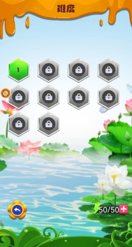3、之后还有关卡选择,总共有10关,只有第一关解锁了,其他的需要解锁。