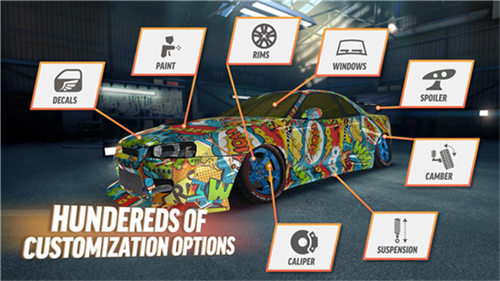 5、用五颜六色的油漆和酷炫的贴纸打造自己的赛车,在不同的街景中一决高下吧。