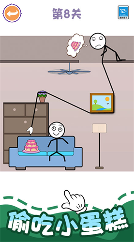 3、在游戏里每个关卡都需借助火柴人超长手的特性,通过缠绕、拉动物体等方式解谜,体验轻松有趣的闯关过程。