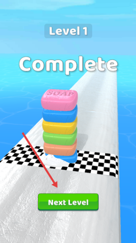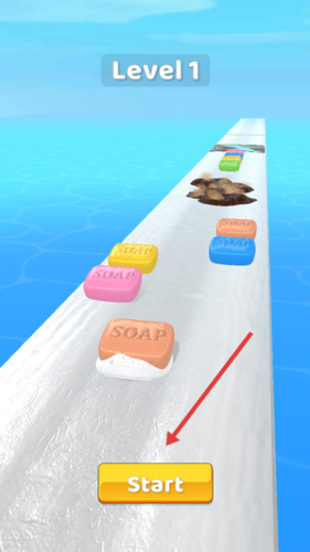 1、点击Start按钮,在Level1场景中开始第一场肥皂堆叠跑酷挑战。