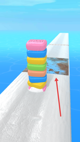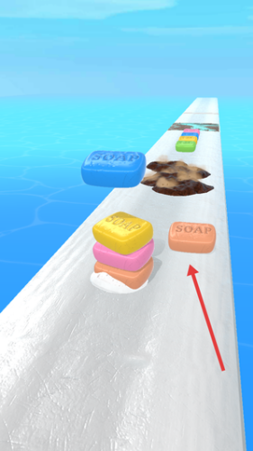 3、持续堆高肥皂塔,小心通过赛道上的破损区域避免肥皂掉落导致失败。