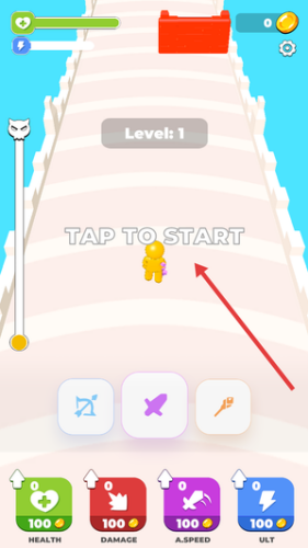 1、点击TAPTOSTART按钮,在Level1场景中操控角色开始第一场战斗跑酷挑战。