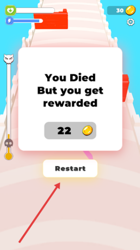 4、若挑战失败可点击Restart按钮重试,通过反复练习提升操作熟练度顺利通关。