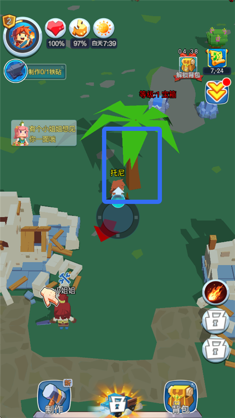 1、通过虚拟键盘上的按键操控,点击屏幕,让自己的角色可以开始冒险了。