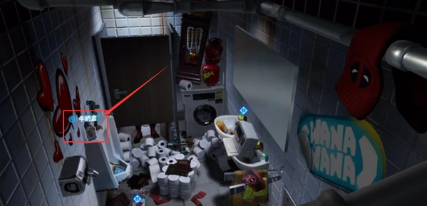 1.寻找死侍的超大黑色记号笔位置在光头特勤屋内的电脑桌上。