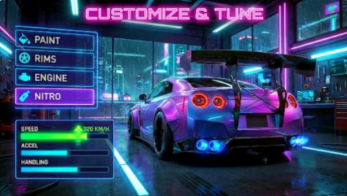 3、根据自己喜欢的风格进行车辆升级,例如倾向漂移则升级悬挂与轮胎,追求极速则强化引擎与氮气系统。
