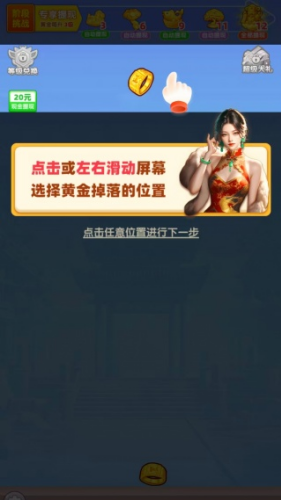 1、登录进入游戏,点击或者左右滑动屏幕,选择合适的位置让黄金进行掉落进行合成。