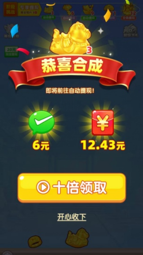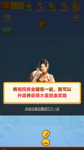 1、玩家通过滑动屏幕,使相同等级的金银财宝相互碰撞,从而合并成更高一级、价值更高的新财宝。