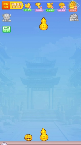 3、点击上方的金葫芦对应下方的金葫芦后,松开手,葫芦就会掉落下来进行合成。