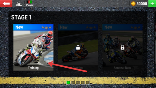3、在STAGE1中找到标有Training的关卡,用于熟悉基础操作和赛道。