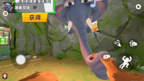 1、进入游戏后,走到大象的面前,和鼻子握手,上下摆动以后,就算是打招呼然后获得钥匙。