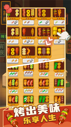 只需指尖轻点,拖动烤串,让烧烤火力全开,趣味无穷。