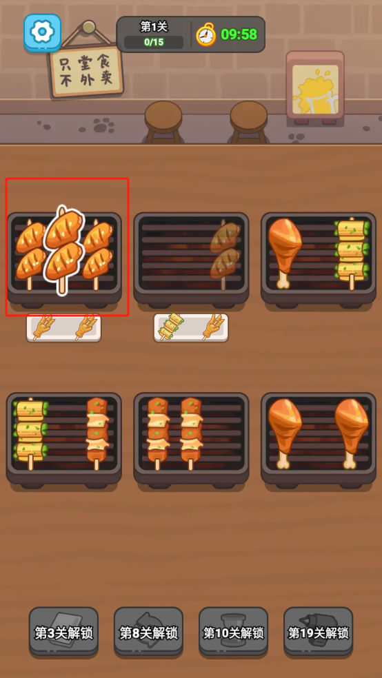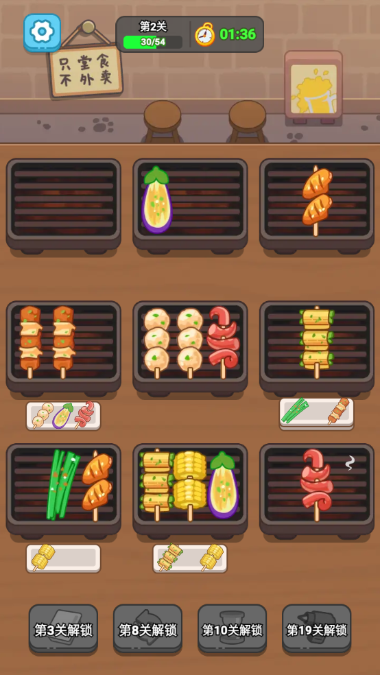 1、诱人精致的烤串造型,更多类型的烤串可以解锁。