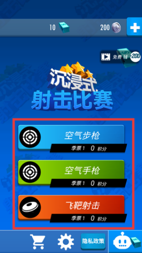 1、打开游戏后选择空气步枪、空气手枪或飞靶射击其中一种模式开始对战。