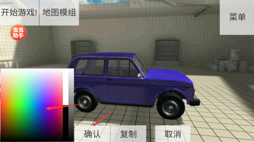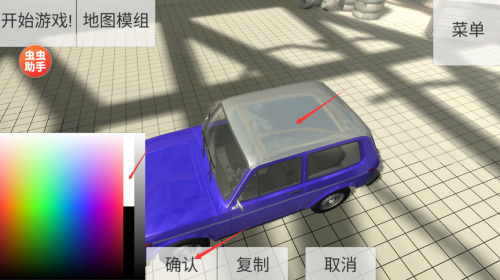 1、在色彩界面,点击红框箭头指向的蓝色,为汽车上色。