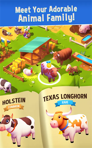 1、当你建立农场小镇动物园时,成为收获游戏中的农民大师,发现并解锁数百种可爱的动物,包括企鹅等特色品种。每一种动物品种都会为您提供独特的农产品,如牛奶、鸡蛋、培根或羊毛,您可以出售、交易、烹饪或烘焙,也可以用来完成销售订单,以扩大和改善您的农场