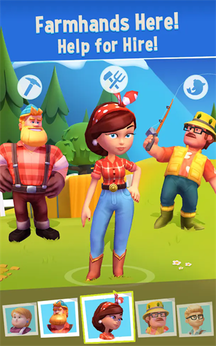 8、在免费的农业游戏中,组建一支专业的农场工人团队,从伐木工到厨师,帮助你的农场。升级他们,解锁新技能和食谱,提高他们的耕作能力;