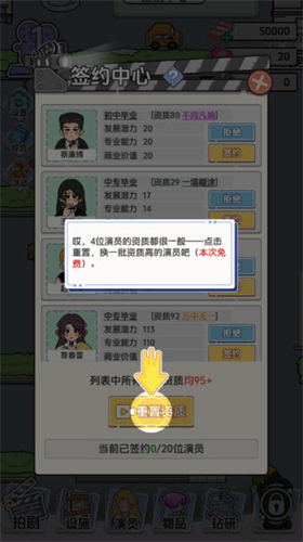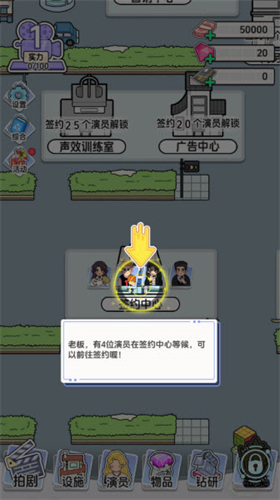 2、跟随新手引导开始游玩,签约我们的第一批演员。