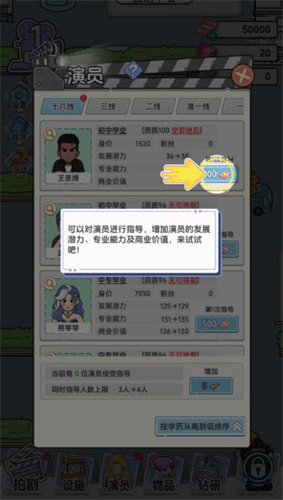3、不同演员的资质都不同,玩家可以通过刷新来获取更高资质的演员。