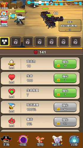 2、不断战斗与升级,通过挑战各类敌人积累经验提升等级解锁更强战力,同时搜集宝藏强化装备,让战斗更具优势。