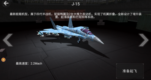2、游戏为你展现的是J-15,它的速度高达2.2Mach,点击准备起飞。
