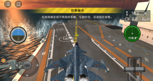 3、上方有任务指示,在东南海域发现了不明身份军舰,你要立即升空去侦察。