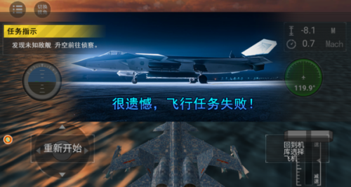4、由于你速度一下子拉到了最大,所以在起飞的过程中撞机了,飞行任务失败。