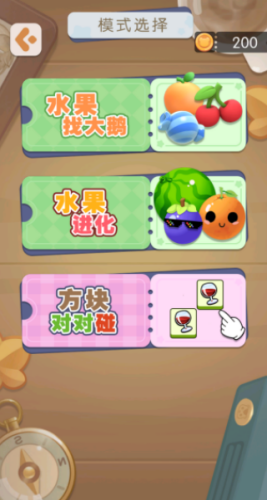2、游戏包含了水果找大鹅、水果进化和方块对对碰等玩法,我选的是水果进化。