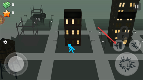 2、进入城市场景后使用移动控制操控角色,点击门按钮进入对应建筑,推动关卡剧情向前发展。