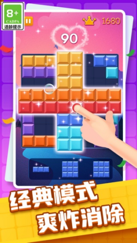 2、方块放置与消除的物理反馈清脆利落,配合连贯的视觉特效带来强烈的成就感。