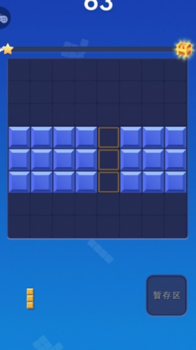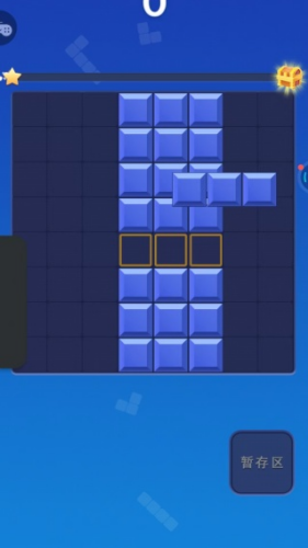 1、将屏幕下方三个随机生成的方块拖入九乘九的棋盘格中,自由旋转方向以寻找最佳放置点。