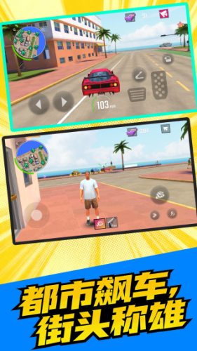 1、在广阔的开放城市中自由驾驶汽车、摩托车等各类载具,参与街头竞速、特技挑战或进行无拘无束的探索漫游。