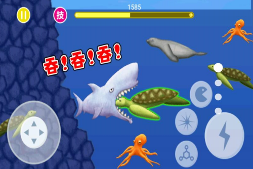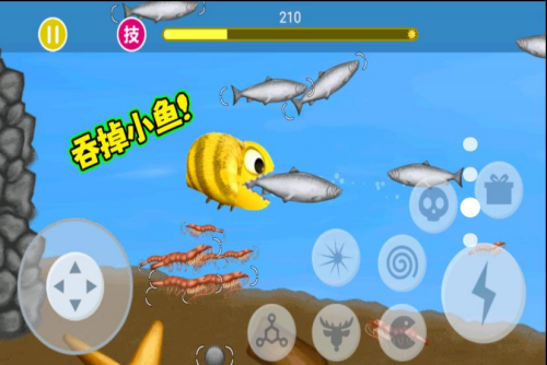 1、随着吞噬进化,小鱼会解锁各种炫酷技能,加速冲刺、隐身躲避、强力吞噬等,让你的吞噬之路更加所向披靡。