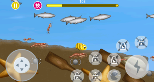 4、小鱼来到了池塘之中,这里有很多的小虾米,小鱼可以不断的吞噬。