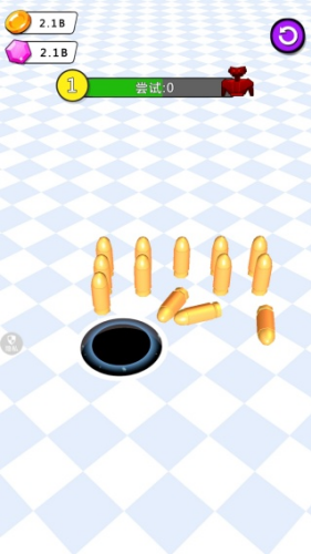 2、如图所示,地图上有很多子弹头,滑动屏幕控制黑洞左右移动,将所有的子弹吞噬掉。
