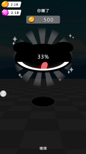 4、完成关卡任务,玩家就会获得500金币奖励,并解锁新的黑洞皮肤,然后进入下一关开始挑战。