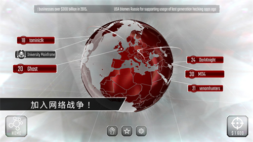 4、进入游戏如图,玩家可模拟黑客入侵全球其他玩家的网络。