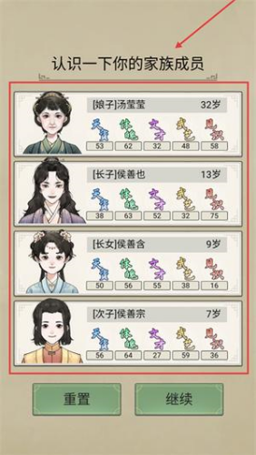 3、处理家事 — 大至成年家人的仕途和生死,小至孩童抓周和考试,家族内发生着非常多样的随机事件要你着手处理,而你的每个选择也会影响家族的走向。