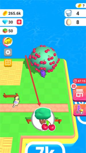 4、待樱桃全部落地后自动进入收集阶段,拾取资源即可完成该环节任务目标。