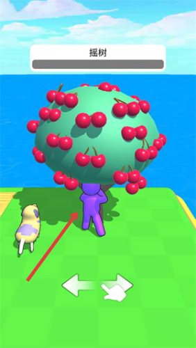 2、点击樱桃树后进入专属摇树界面,根据屏幕指示进行滑动操作模拟摇晃动作。