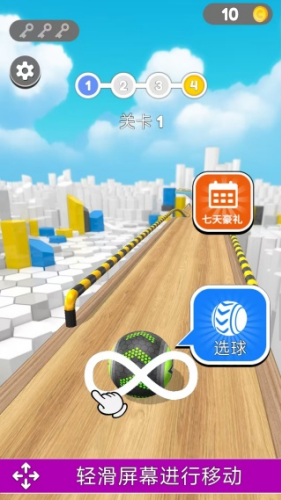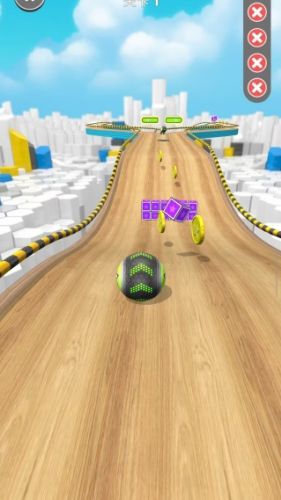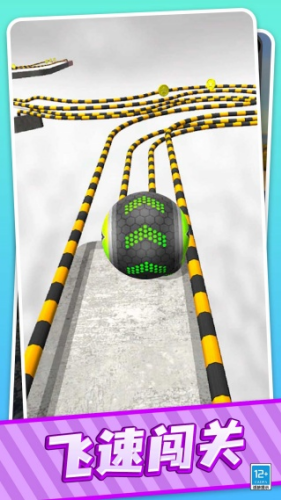 1、轻松滑动屏幕保持球球在赛道中央区域滚动,可以为应对两侧突然出现的障碍物。