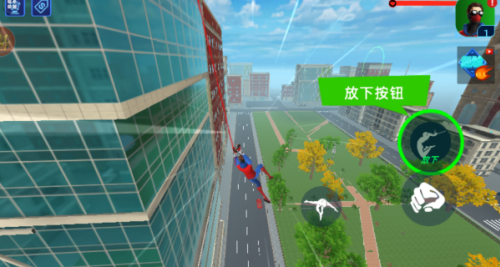 1、进入游戏后,你可以根据指示去控制蜘蛛英雄四处攀岩,放下按钮就可以落地。