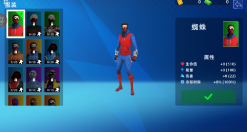 2、蜘蛛英雄还可以自定义服装,但是目前只有第一款解锁了,点击确定。