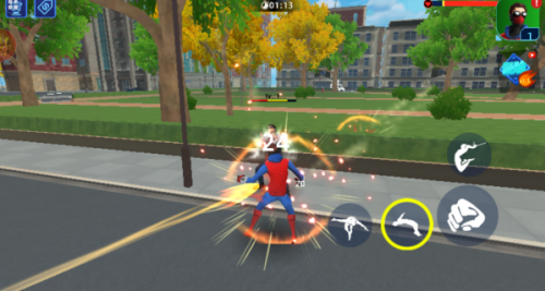 3、利用虚拟摇杆操控着蜘蛛英雄与邪恶的敌人展开对决,灵活施展拳击和蛛丝。